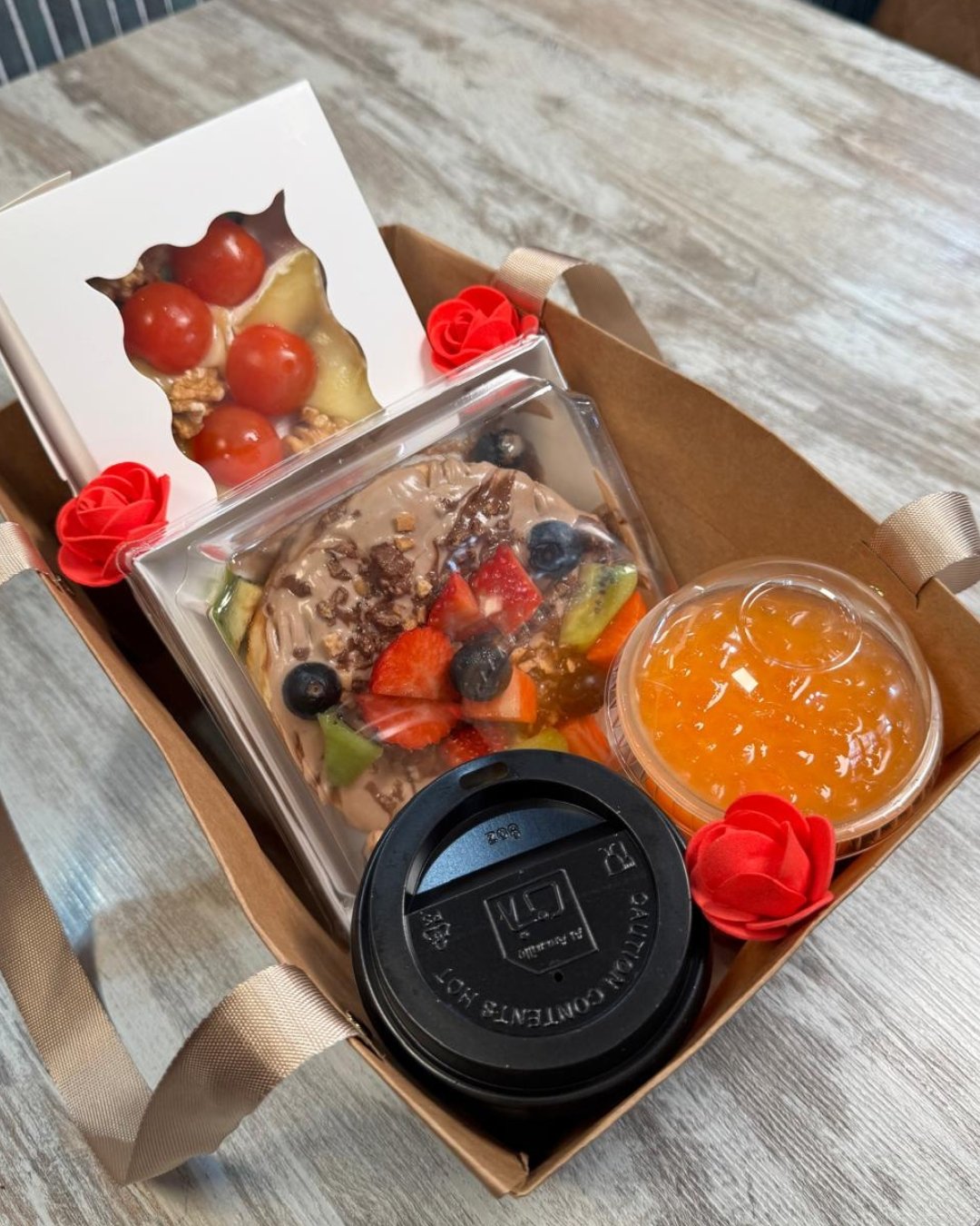 Puedes disfrutarlo en el local, creando un momento íntimo y especial, o llevártelo a casa presentado en una bonita cesta, perfecta para aniversarios, sorpresas o simplemente para regalar un instante diferente.